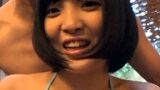 ニットを着ている姿でもかなりの大きさが目立つ乳の持ち主は、絵理奈ちゃん。黒髪に反し、顔立ち、SEXは欧米化の様子を伺わせます。耳愛撫では「耳だめです」で感じ、自慢の乳愛撫になると目がとろーーん。パンツにしっかり染みを付け、パイズリヨロシクからフェラチオし、アナル舐めで手コキ、この時にはヨダレ全開で殿を楽しませるのでした。最後には白目むいて「それ気持ちいいですーーー」!!